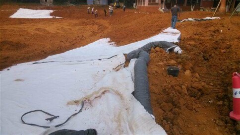 進行堵漏維修也容易實施,還具有自行修復裂縫的功能。膨潤土防水毯不能直接覆蓋在地基上,還應在下面覆一層土層,這層土層與防水毯構成保持水體的生態(tài)系統(tǒng),進一步提高了防水防滲性能。
